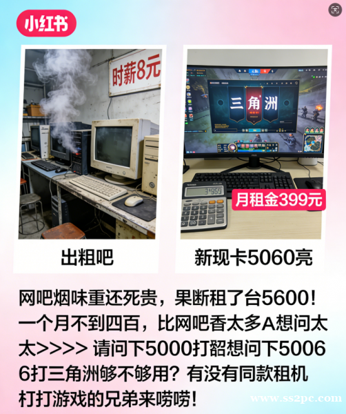 性价比炸裂:网吧一小时10-15元,按每天玩3小时算,一个月就要900-1350元。而租一台RTX 5060电脑,每月不到400元,相当于省下一半以上的钱,还不用忍受嘈杂环境。